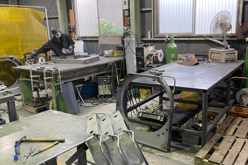 当社では、薄板、中厚板の溶接・組み立て・表面仕上げ等を行なっております。平成27年に設立した事業所ですが、今後の受注・顧客増のために技術を磨き、基盤を構築していきたいと思います。